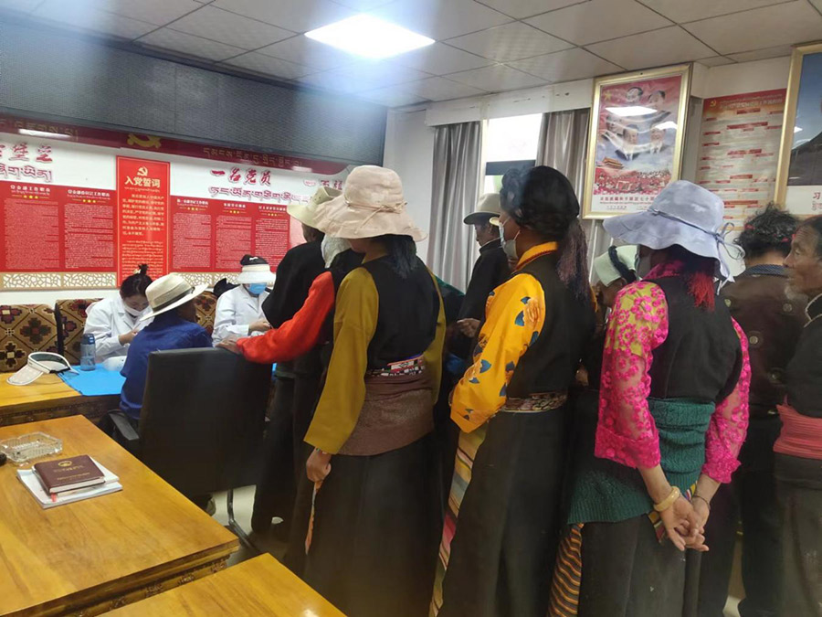 當(dāng)日上午,日喀則市西華醫(yī)院醫(yī)護(hù)人員在切娃鄉(xiāng)黨委協(xié)助下,將體檢設(shè)備帶到各村村委會(huì),為群眾進(jìn)行義務(wù)健康體檢。體檢項(xiàng)目包括B超、心電圖、血常規(guī)、尿常規(guī)、肝腎功能、血糖、血脂和血壓等。體檢過程中,醫(yī)生們向群眾耐心地講解飲食起居方面注意事項(xiàng)與養(yǎng)生保健知識(shí),解答常見病、多發(fā)病的預(yù)防診治等問題,努力推動(dòng)農(nóng)牧民群眾們實(shí)現(xiàn)“無病早預(yù)防、有病早治療、健康有保障”。