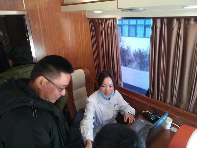 我院高度重視此次公益活動(dòng),組成15人義診巡回醫(yī)療服務(wù)隊(duì),委派體檢車輛2輛,攜帶彩超1臺、血糖儀2部、血氧飽和度檢測儀各2部及聽診器等醫(yī)療設(shè)備對日喀則市教育局進(jìn)行免費(fèi)義診活動(dòng)。主要義診內(nèi)容包括:內(nèi)科常規(guī)檢查、外科常規(guī)檢查、胸部正位片、肝膽脾胰彩超、雙腎輸尿管彩超、子宮附件彩超、前列腺彩超、尿常規(guī)、血常規(guī)、腎功能、血脂四項(xiàng)、心電圖、血壓監(jiān)測、心肺聽診、血糖檢測、血氧飽和度等并建立健康檔案。